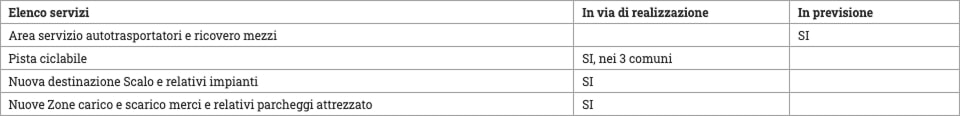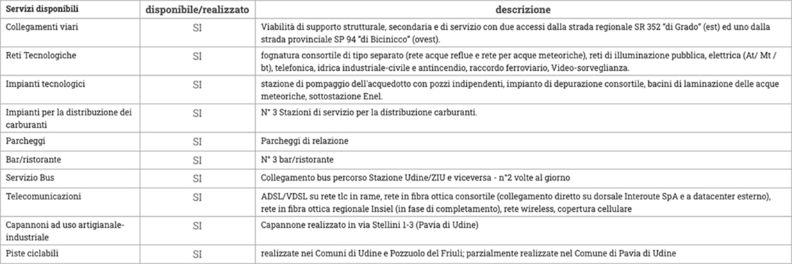 Servizi resi disponibili per l’area attrezzata ZIU